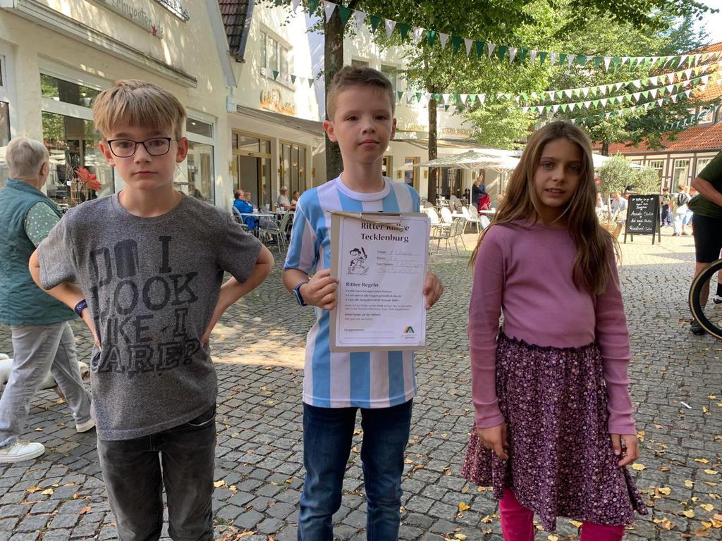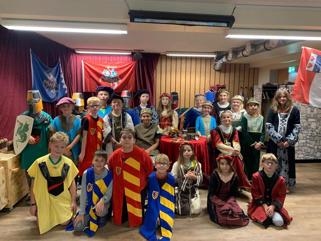 Am Nachmittag hieß es dann „Tecklenburg sucht den Superstar“- bei einer fröhlichen Show präsentierten die Kinder ihren Mitschülern Kunststücke, Lieder und vieles mehr. Abends erlebten alle beim großen Rittermahl ein besonderes Festessen, das- ganz stilecht- nur mit den Händen gegessen wurde.