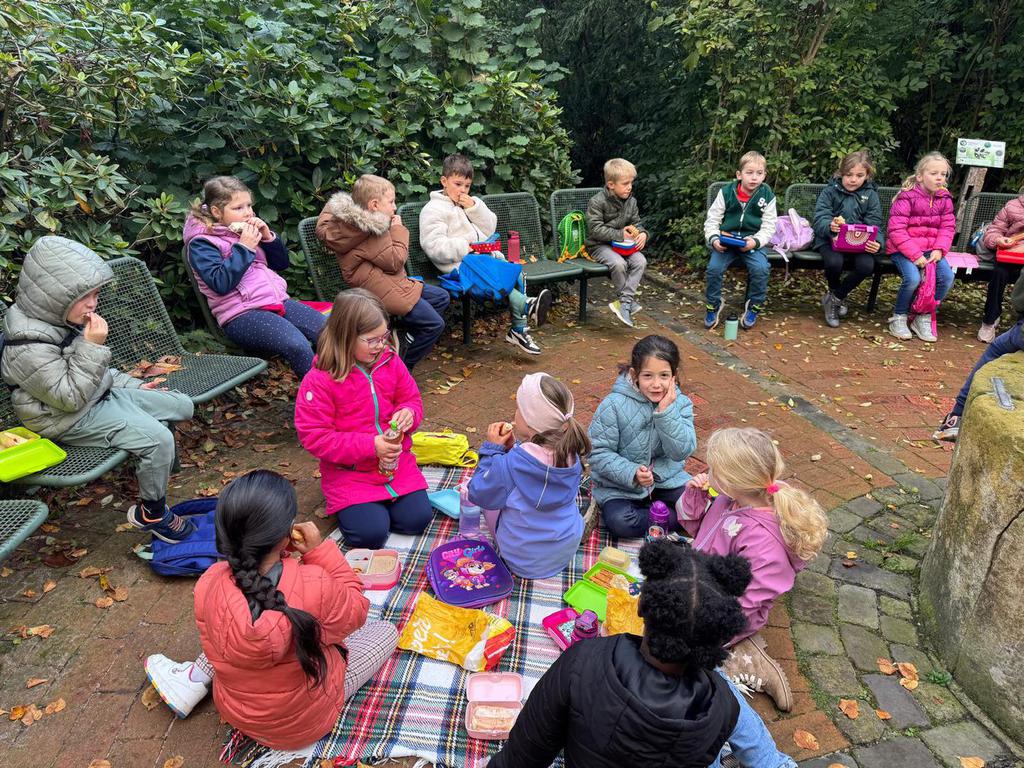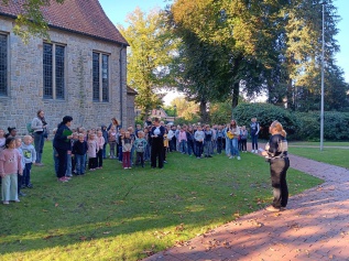 Traditionell findet am letzten Tag vor den Herbstferien unsere Sternenwanderung statt. Alle Klassen gehen auf unterschiedlichen Wegen zum gemeinsamen Treffpunkt in den Bürgerpark. Dort wird dann gemeinsam mit allen Klassen gespielt.