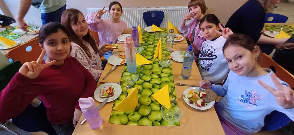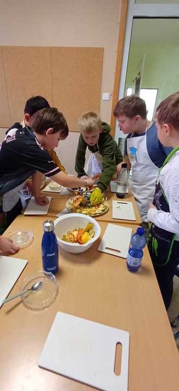 Der Ernährungstag beginnt mit einer kleinen theoretischen Einheit. Danach bereiten die Kinder zum Thema passende Gerichte und Snacks zu.